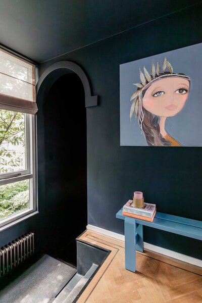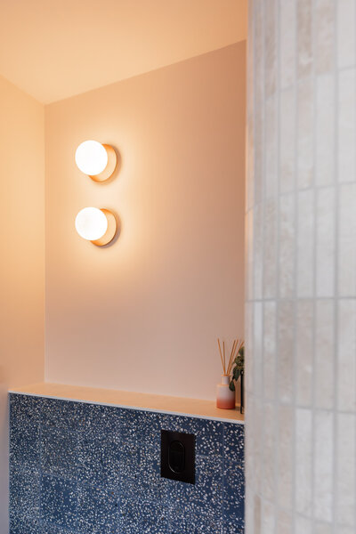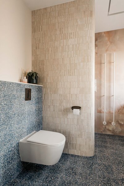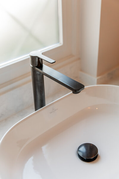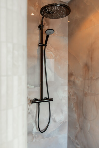 In dit voormalige koetshuis bevindt zich inmiddels een hele fijne woning. Door de hoge muren ontstaat er beneden een grote slaapverdieping incl. badkamer. Boven vind je karakteristieke elementen die het leefgedeelte veel gezelligheid geven. Tijdens een kleur- en meubeladvies hielp ik de bewoners aan een mooie verbinding tussen deze twee etages. Een half jaar later hebben we dit nog uitgebreid met dit unieke badkamer ontwerp.